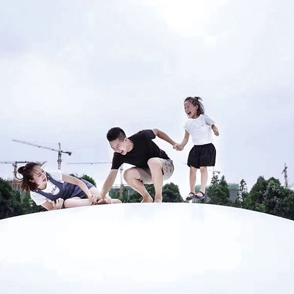 A 充氣彈跳床是采用耐沖擊、高密度、抗紫外線的PE加工而成的,等到充完氣之后就是充氣彈跳床了,彈性很好,大人小孩都能使用。